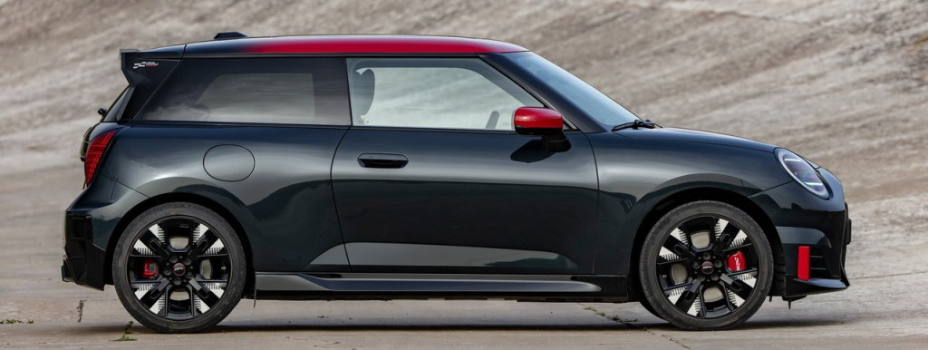 - 실내: JCW 스티어링 휠, 스포츠 시트, 붉은 패턴 대시보드.