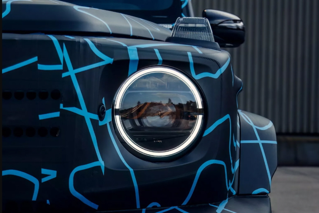- 독특한 외관 디자인 - G클래스의 고유한 박시한 디자인에 원형 헤드램프, 슬림한 리어램프, 후면부 스페어타이어 트렁크 등 현대적인 요소가 가미되었습니다. 배터리 보호를 위한 언더커버도 추가되었죠.