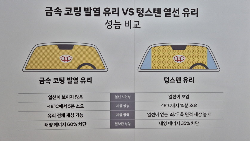 마지막으로 소개할 기술은 금속 코팅 발열 유리예요. 이 유리는 차량 전면 유리 사이에 약 20개의 금속 코팅 층이 삽입되어 있어서, 유리 자체가 열을 발생시켜 겨울철 서리나 습기를 빠르게 제거할 수 있어요. 성에를 5분 내에 완전히 없앨 수 있다고 하니 정말 편리하겠죠? 여름철에는 전력을 사용하지 않고도 태양 에너지를 60% 이상 차단해 에너지 효율을 크게 높일 수 있어요. 또한, 열선이 보이지 않아서 운전 중 시야가 깨끗하게 유지된다는 점도 큰 장점입니다.