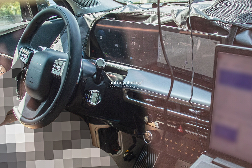 해외 자동차 전문 매체 오토에볼루션에 따르면, 아이오닉9의 양산형 모델로 추정되는 차량이 위장막을 두른 채 공개되었는데요, 특히 실내 디자인이 처음으로 노출되었습니다. 실내는 수평형 대시보드를 중심으로 파노라믹 디스플레이와 공조장치 조작부가 자리하고 있어요. 이 구성은 신형 싼타페와 매우 흡사해, 싼타페의 팬들에게는 반가운 소식이겠죠? 스티어링 휠에 위치한 전자식 기어레버와 3열 7인승 시트 구성, 동그란 도어핸들도 이 차량의 독특한 매력을 더해줍니다.